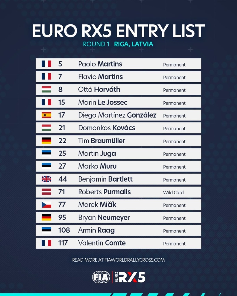 Dnes byl zveřejněn seznam přihlášených jezdců do nového evropského šampionátu Euro RX5 pro závod v Rize včetně českého zástupce Marka Mičíka. Seznam obsahuje 14 permanentních jezdců a jednu divokou kartu.