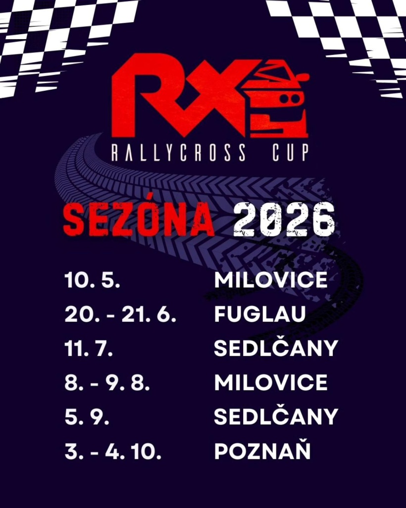 Dnes byl zveřejněn kalendář seriálu Rallycross Cup 2026, který začne v květnu na nové trati v Milovicích.Kalendář RX CUP 2026