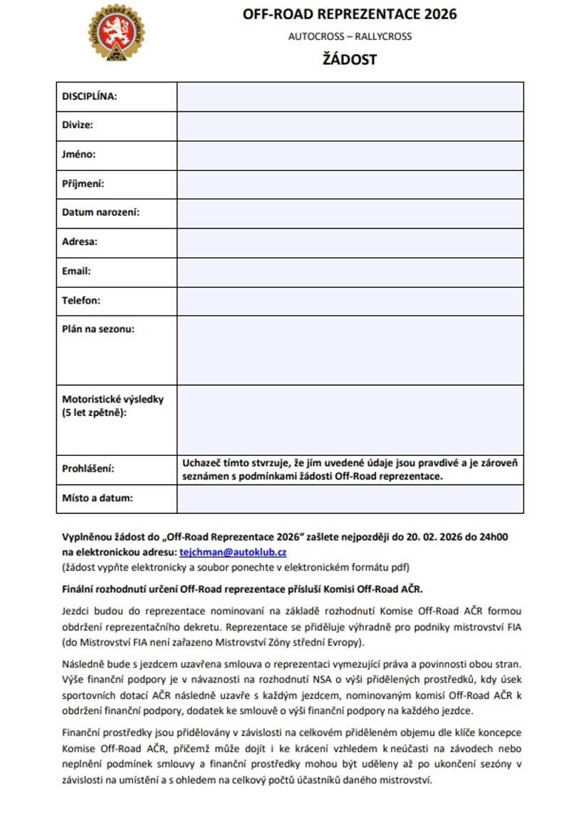 Žádost o Off-Road reprezentaci 2026 (pdf.) - ke stažení zde