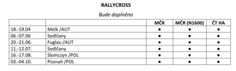 Zatím předběžný a neúplný kalendář pro sezonu 2026 mistrovství Česka v rallycrossu.