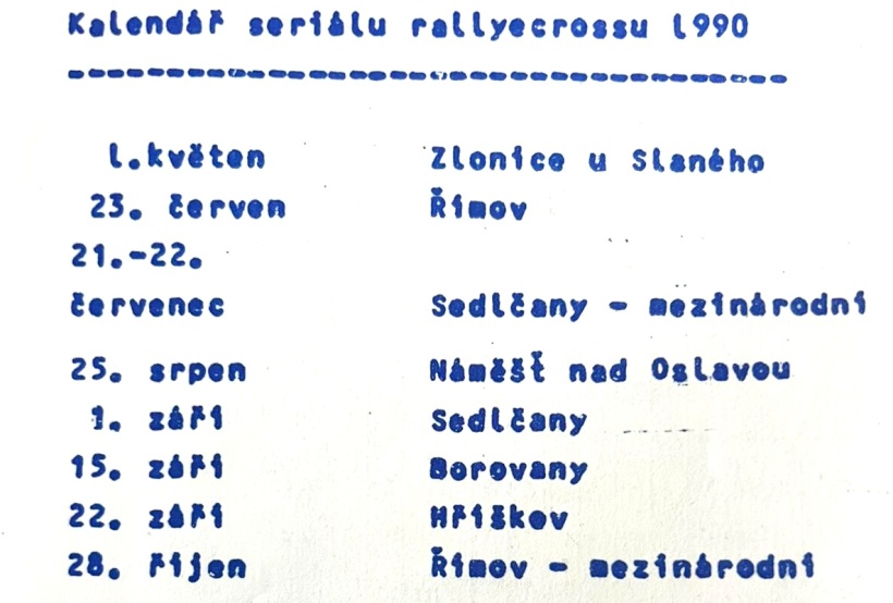 Začátek devadesátých let znamenal pro rallycross v Československu posun od poháru k oficiálnímu mistrovství ČSFR. Kalendář obsahoval šest závodů, nejlepších pět výsledků se pak započítávalo do konečného pořadí. Navíc se v Sedlčanech a v Římově uskutečnily první mezinárodní rallycrossy. U našich tehdejších funkcionářů, i přes velikou popularitu v Evropě, rallycross stále nepatřil k oblibě.