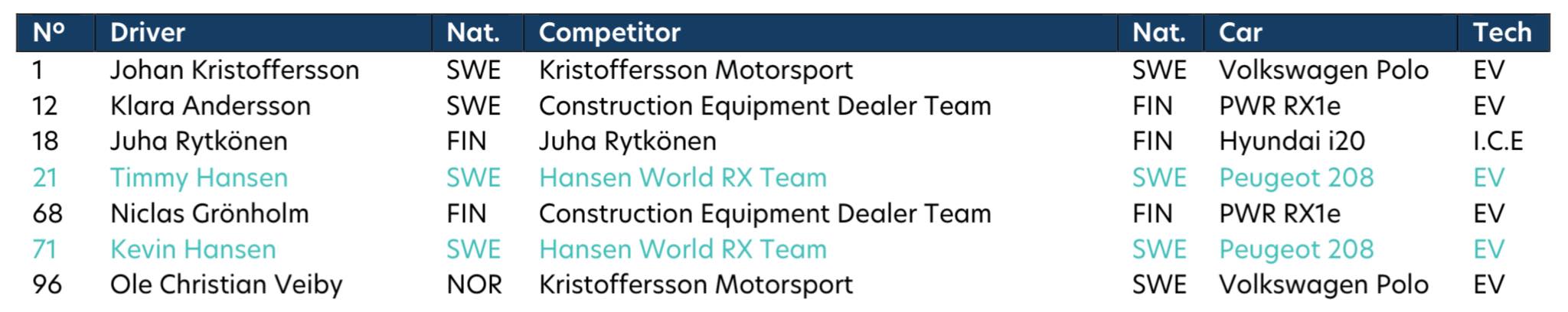 Dnes byl zveřejněn seznam přihlášených jezdců na čtvrtý závod mistrovství světa a Evropy na finském Kymiringu.World RX Euro RX1 Euro RX3