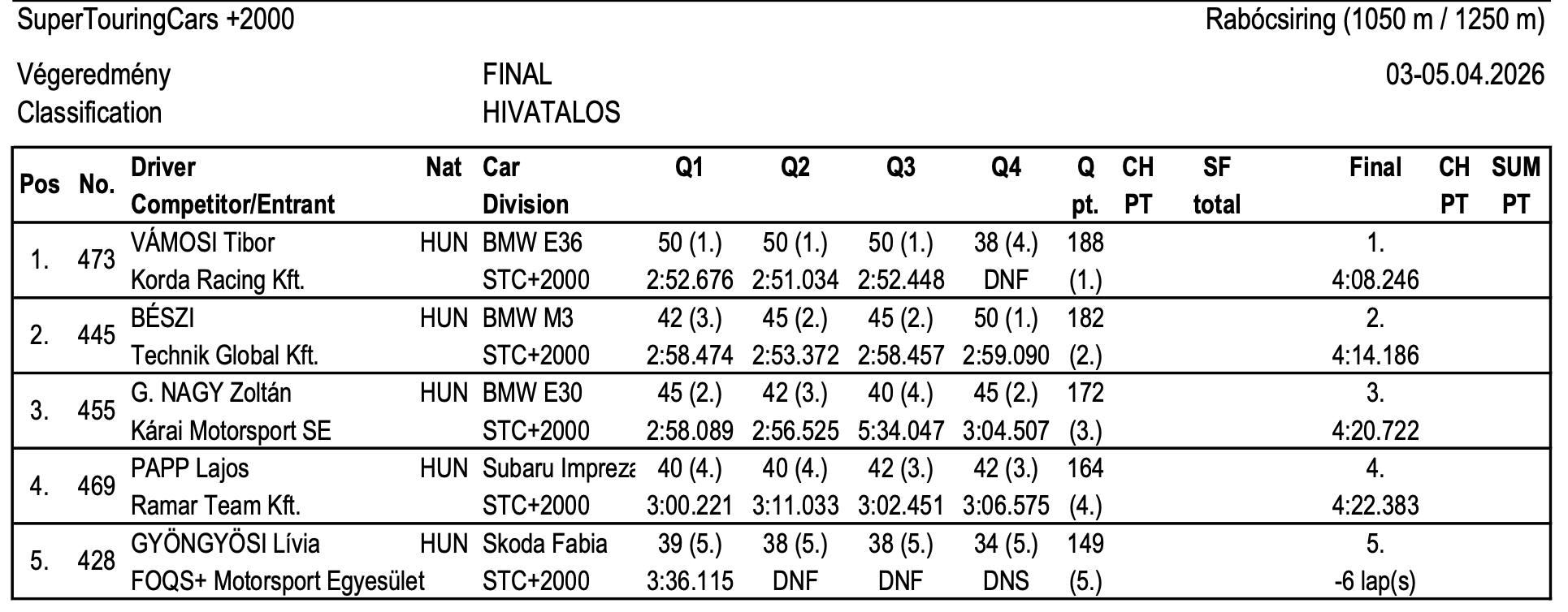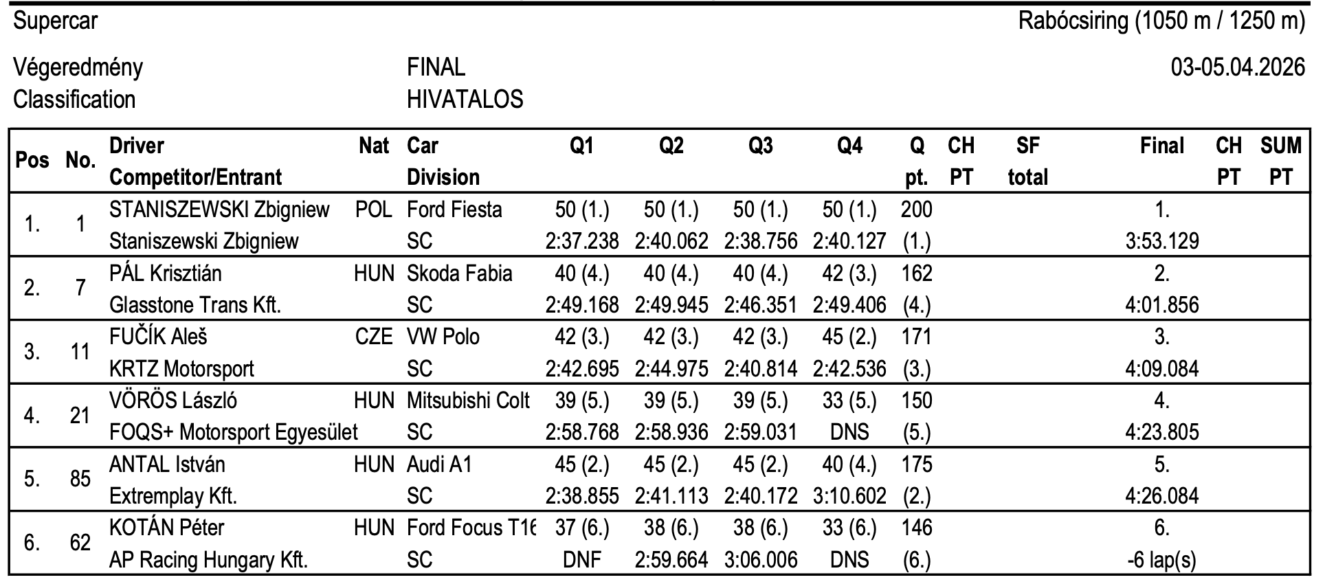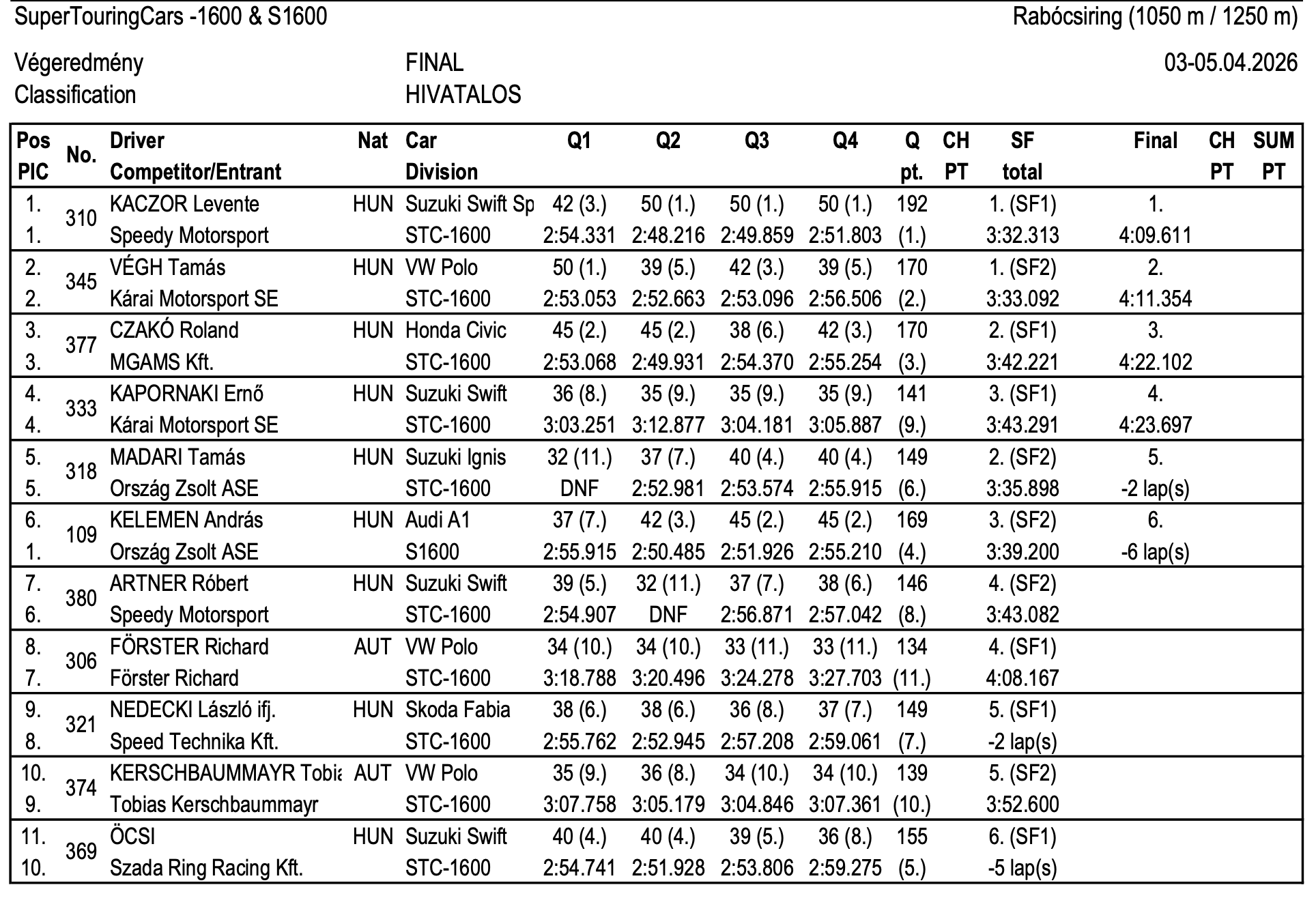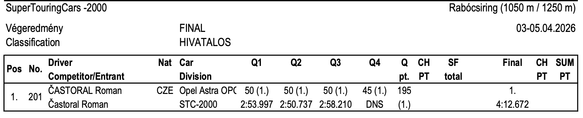 Konečné výsledky úvodního závodu mistrovství Zóny střední Evropy 2026, který se uskutečnil v maďarské Mariapócsi.ZSE 2026 - Mariapócs (HU) - konečné výsledky
